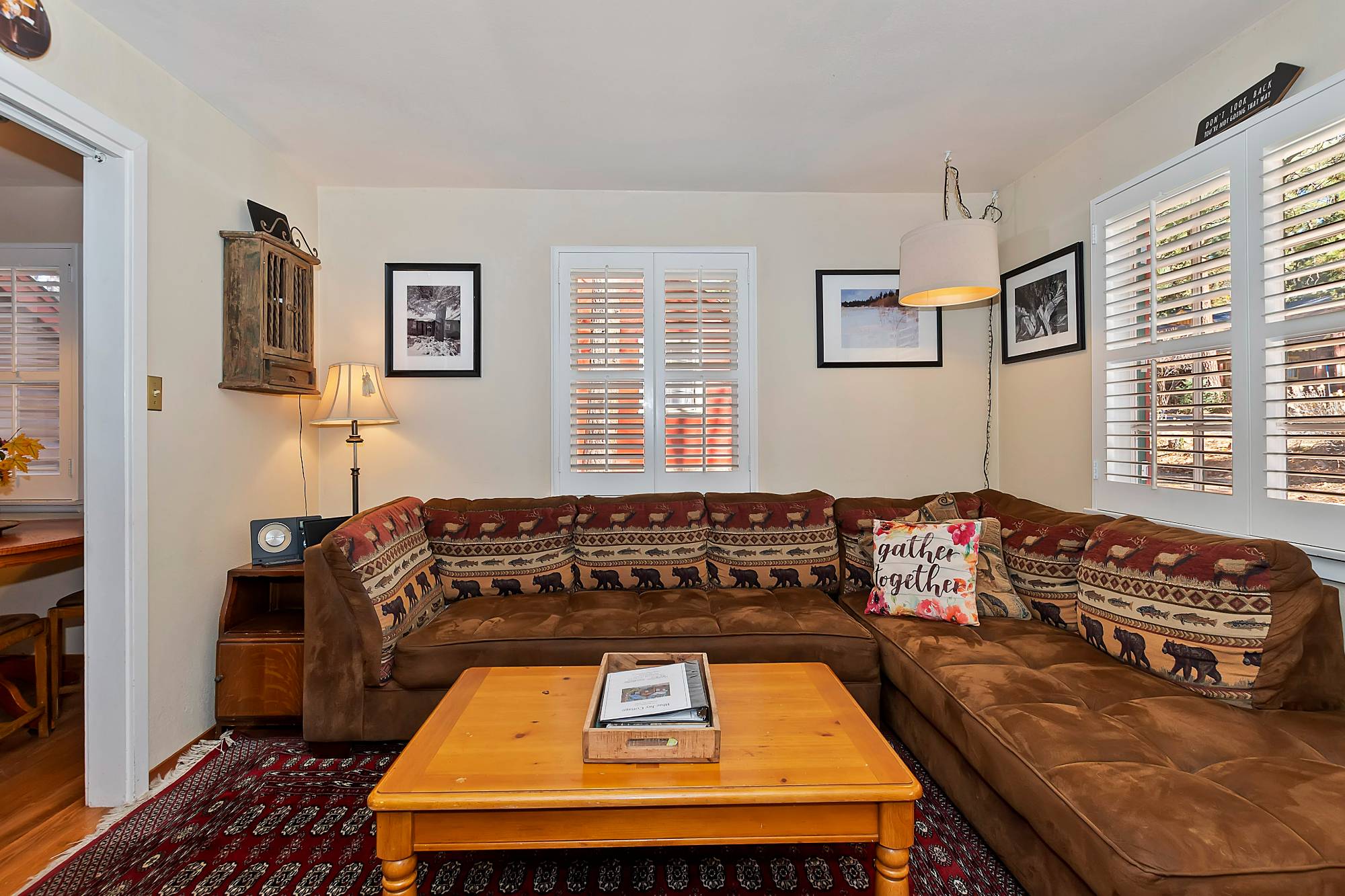 ✓ Cozy Winter Retreat: The enclosed back porch provides space for winter gear after a day in the snow and includes a convenient stacked washer and dryer.