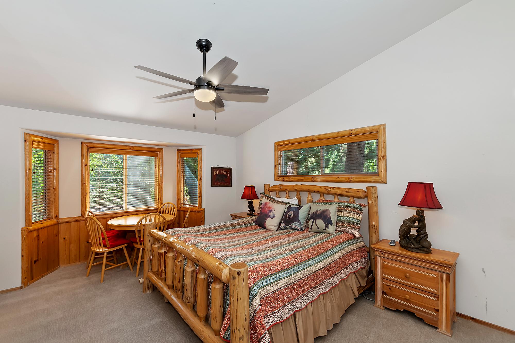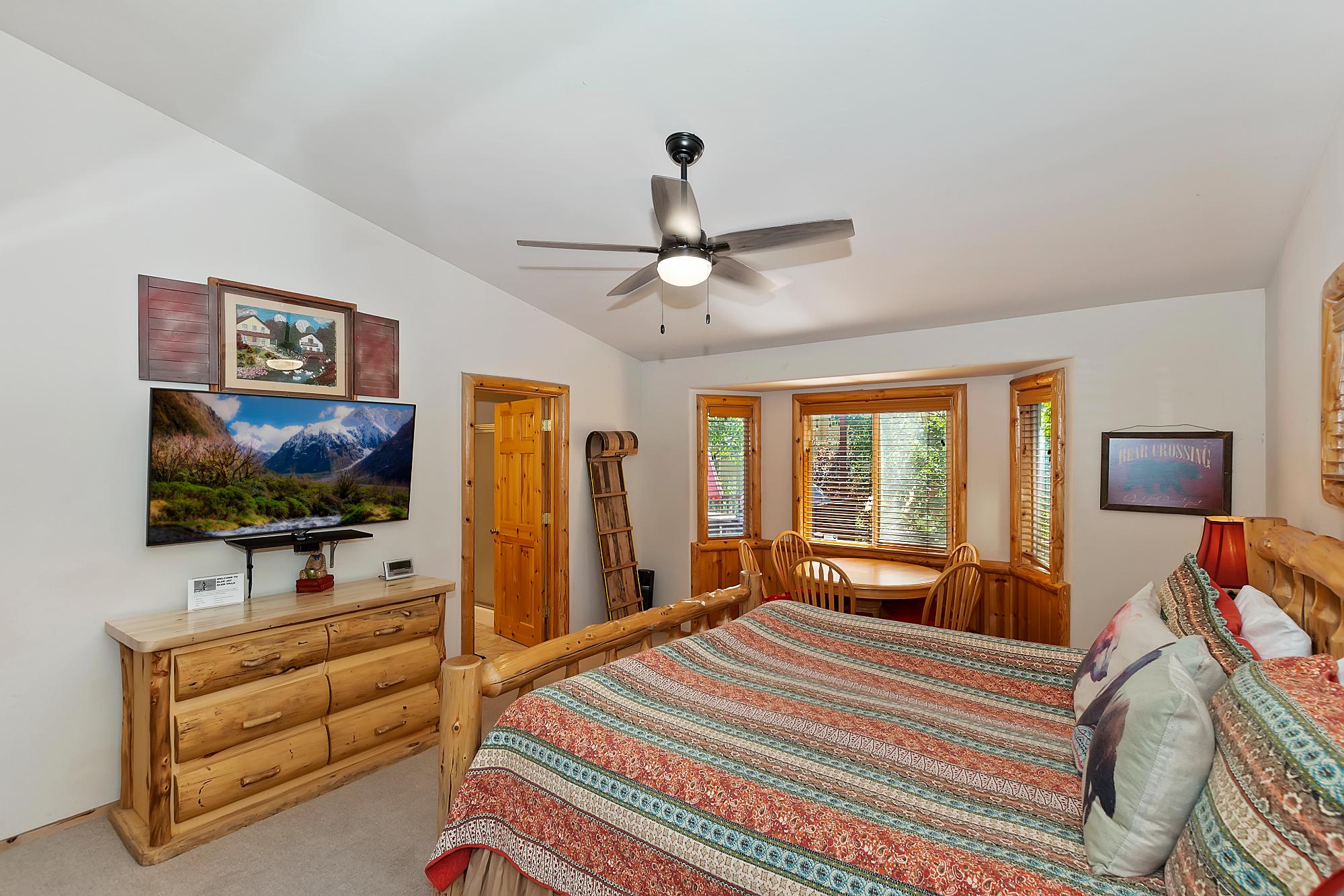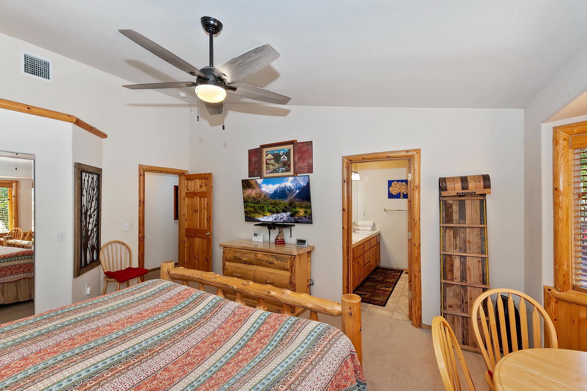 ✓Master Bedroom: King bed with knotty pine frame, high ceilings, ceiling fan, flat-screen TV with HDTV cable and DVD player, en suite 3/4 bathroom with double sinks. Overlooks the back yard.