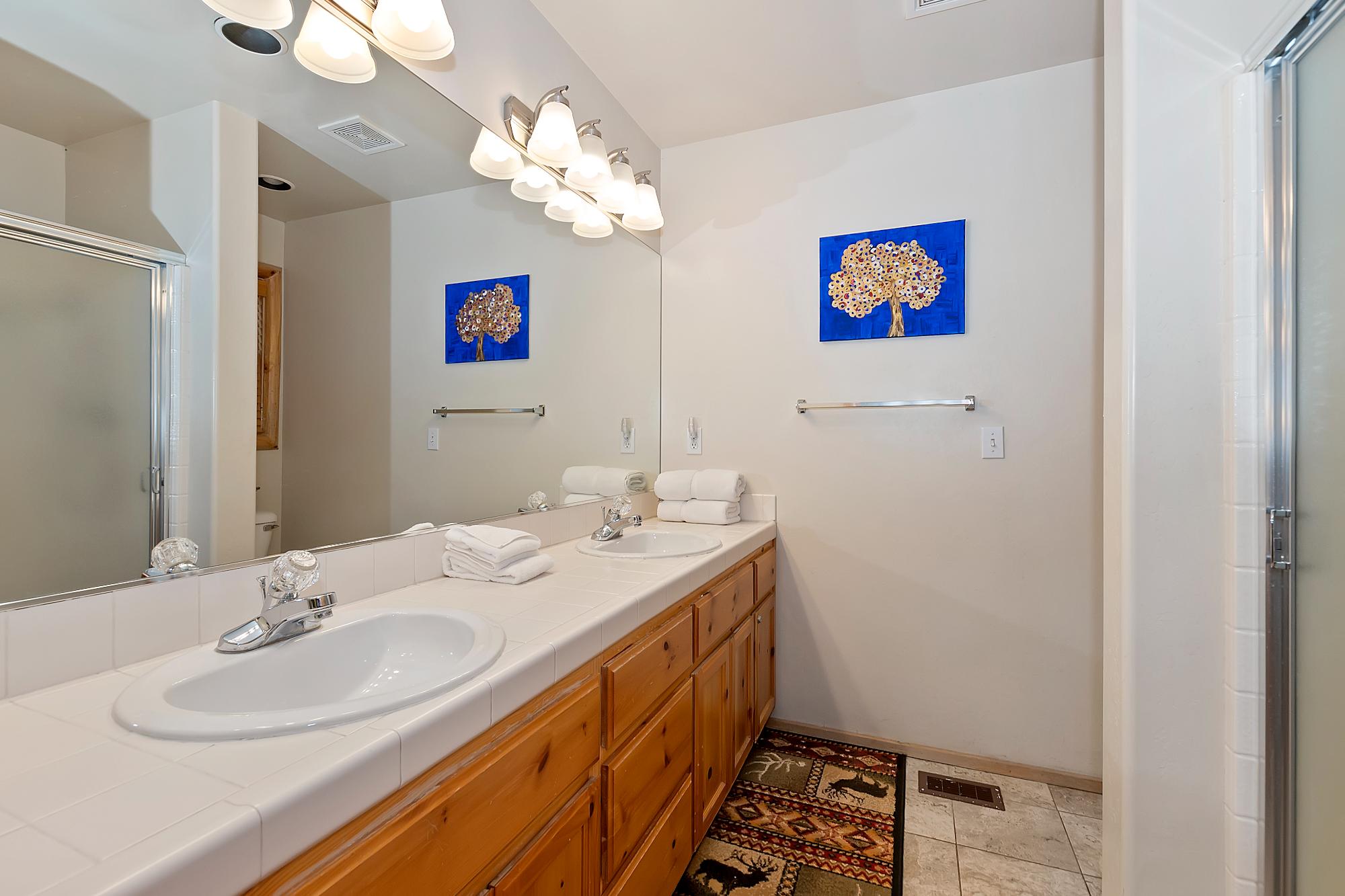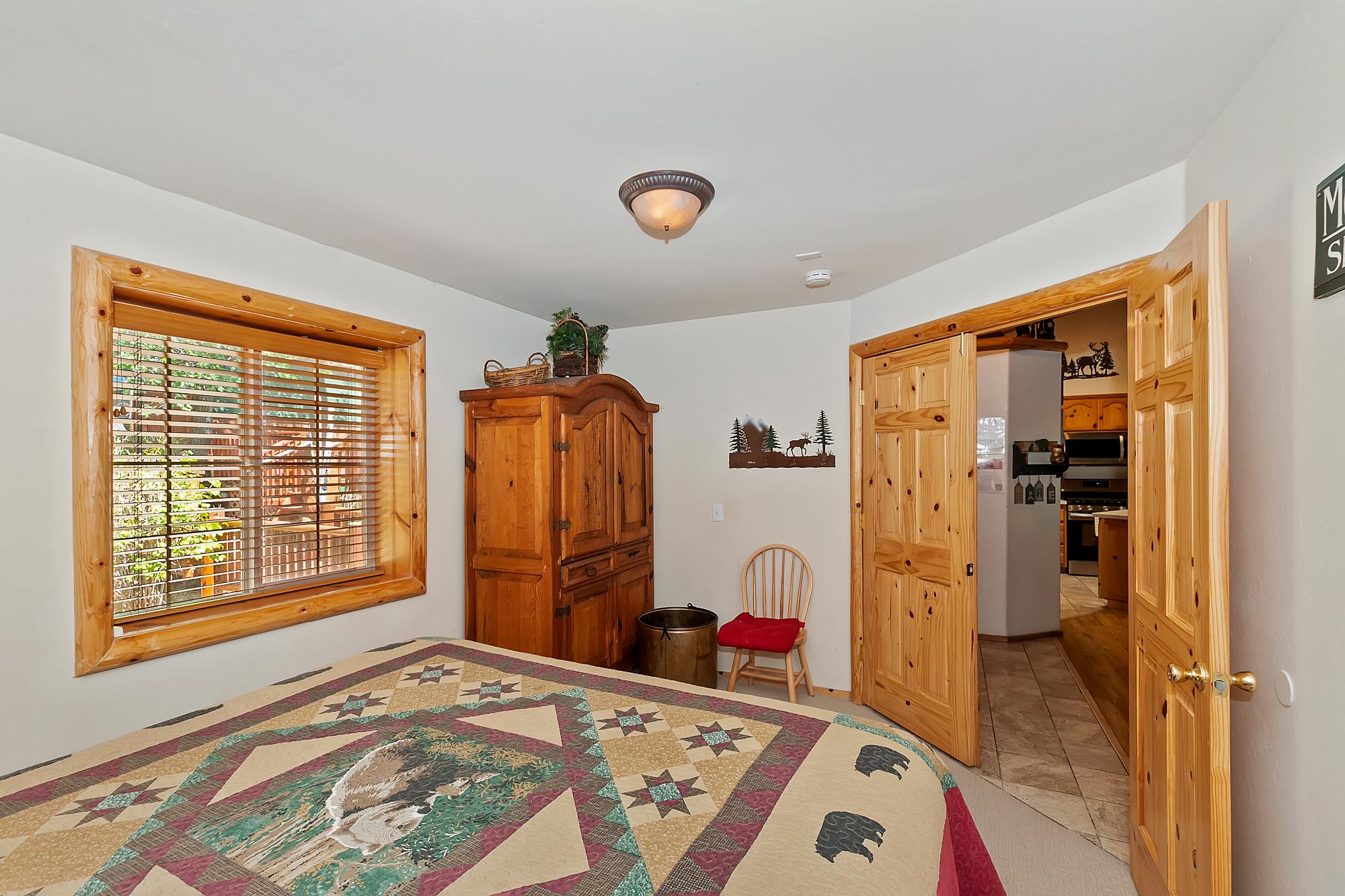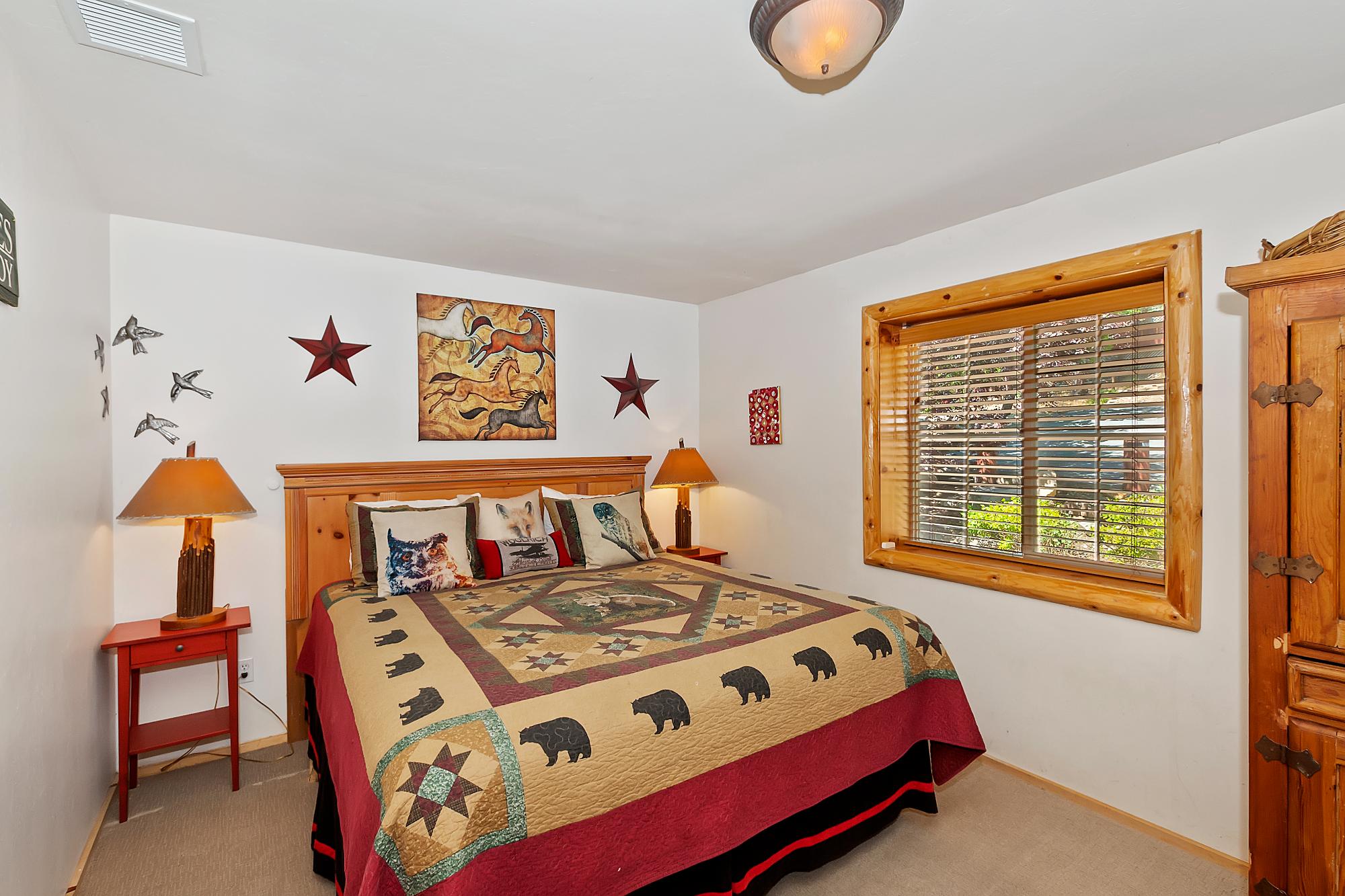 ✓Master Bedroom: King bed with knotty pine frame, high ceilings, ceiling fan, flat-screen TV with HDTV cable and DVD player, en suite 3/4 bathroom with double sinks. Overlooks the back yard.