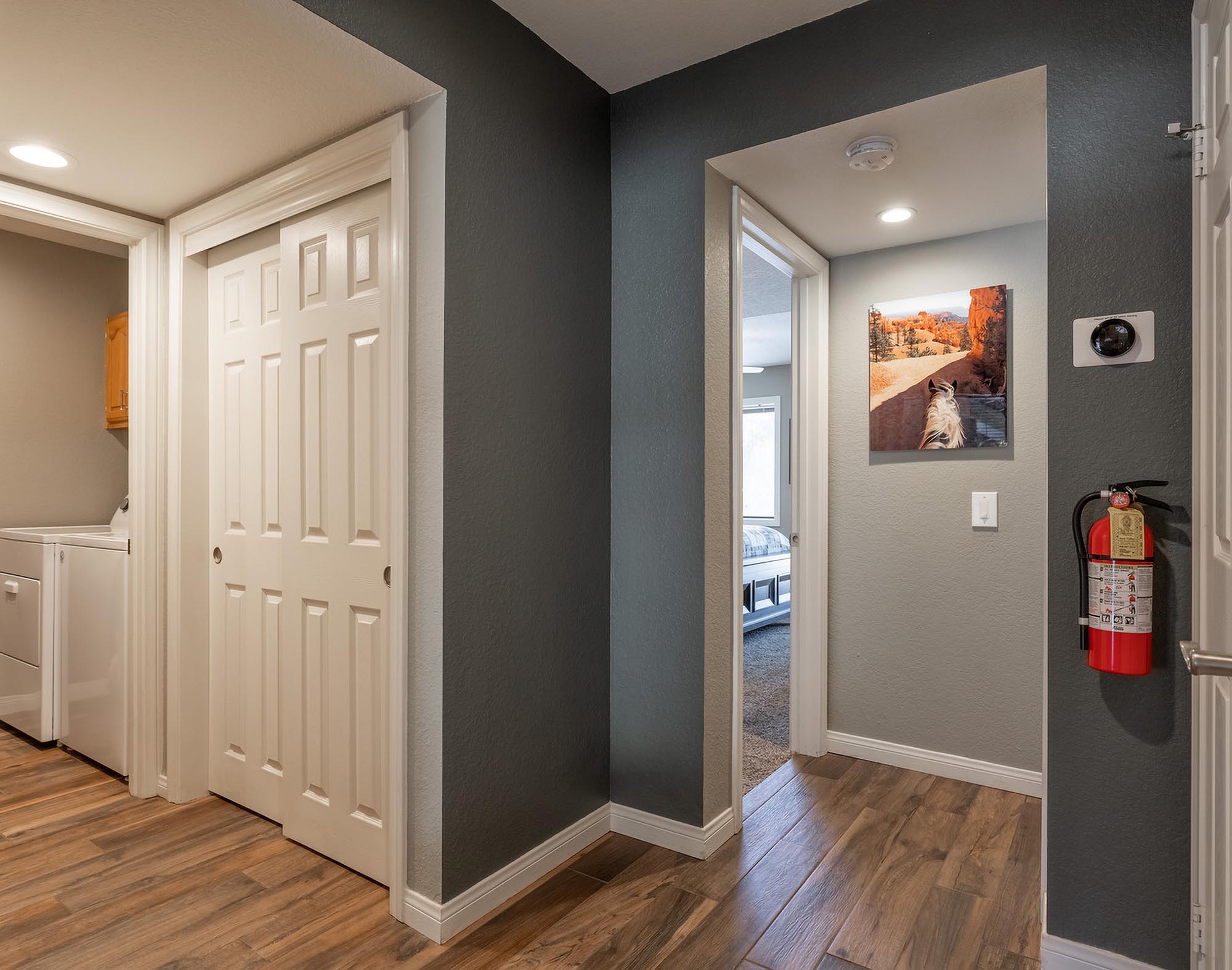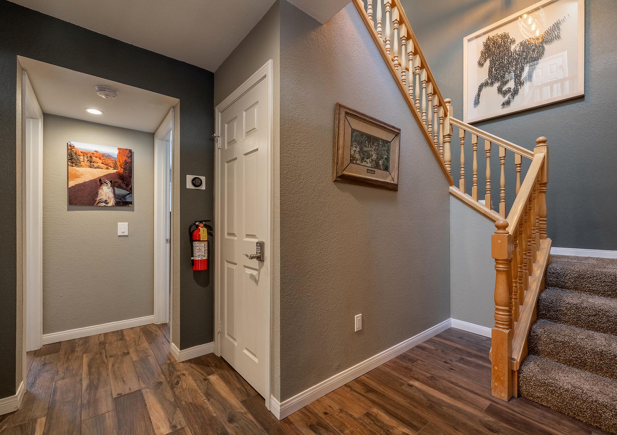 All sleeping quarters are located downstairs for a quiet and restful stay.