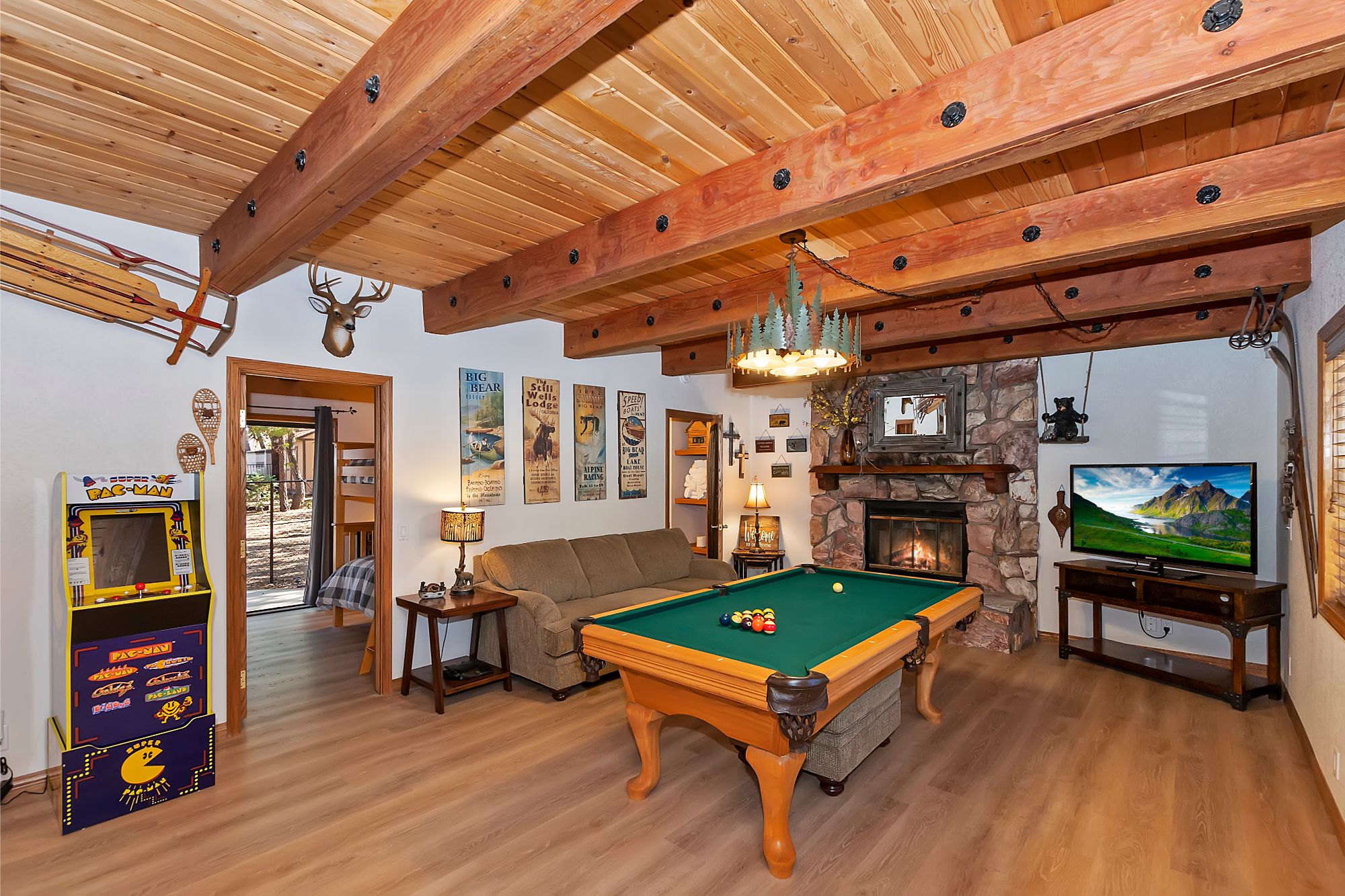 ✓ Entertainment: Pool table, vintage arcade game, card table, multiple flat-screen TVs with Roku.