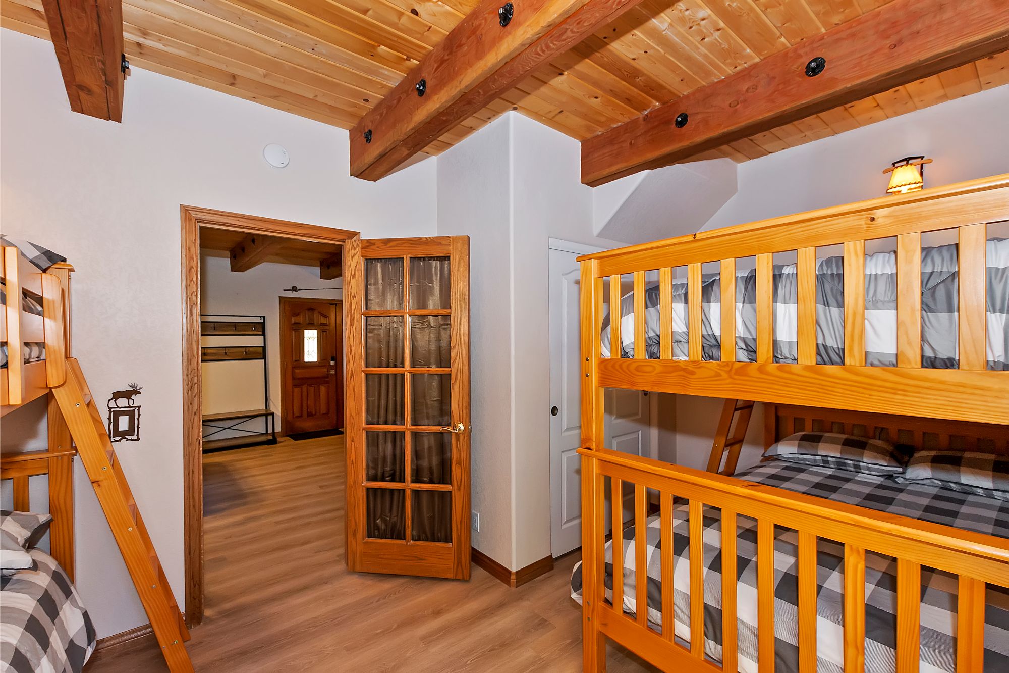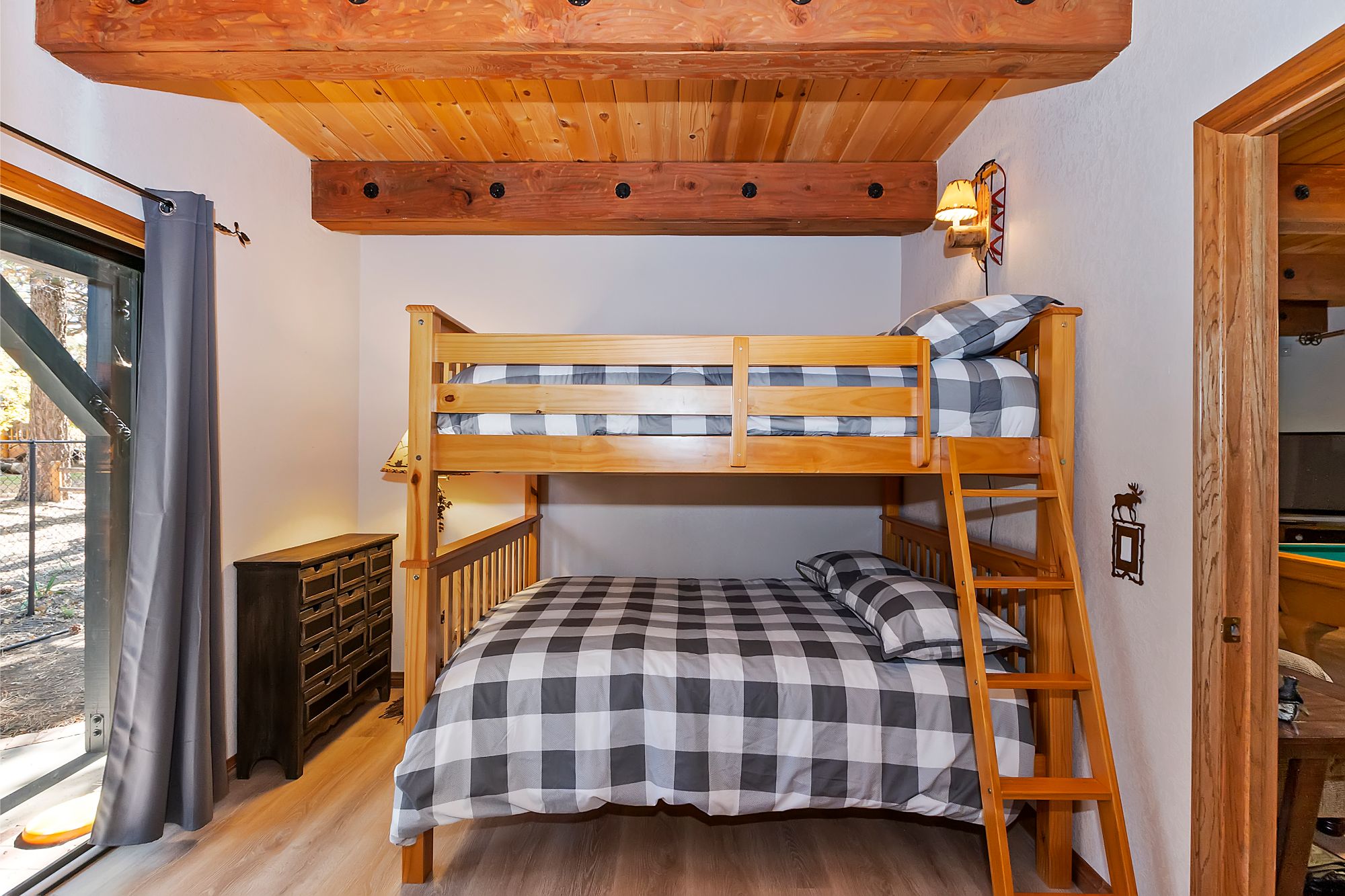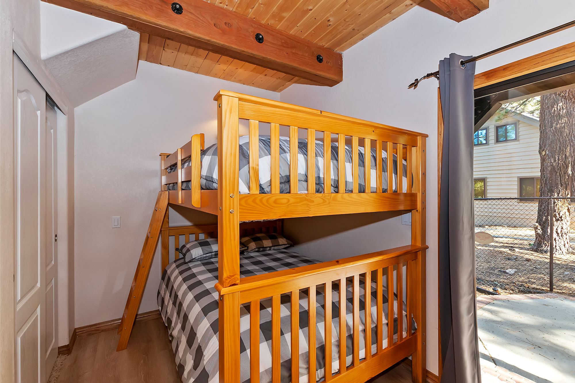 ✓ Third Bedroom (Bonus Room): Contains two full-over-full bunk beds, ample closet space, and outdoor access to the backyard.