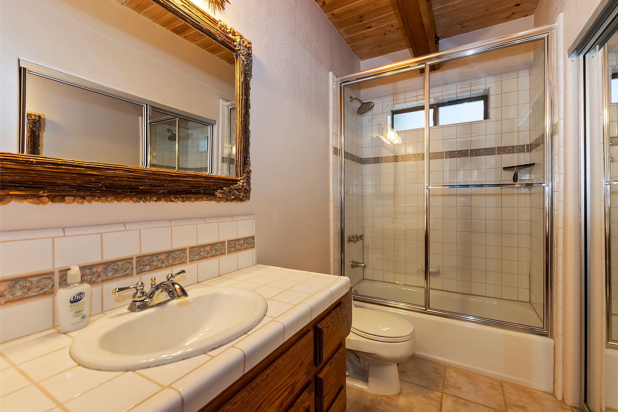 ✓ Upper Level: Shared full bathroom with access from the master bedroom and hallway.