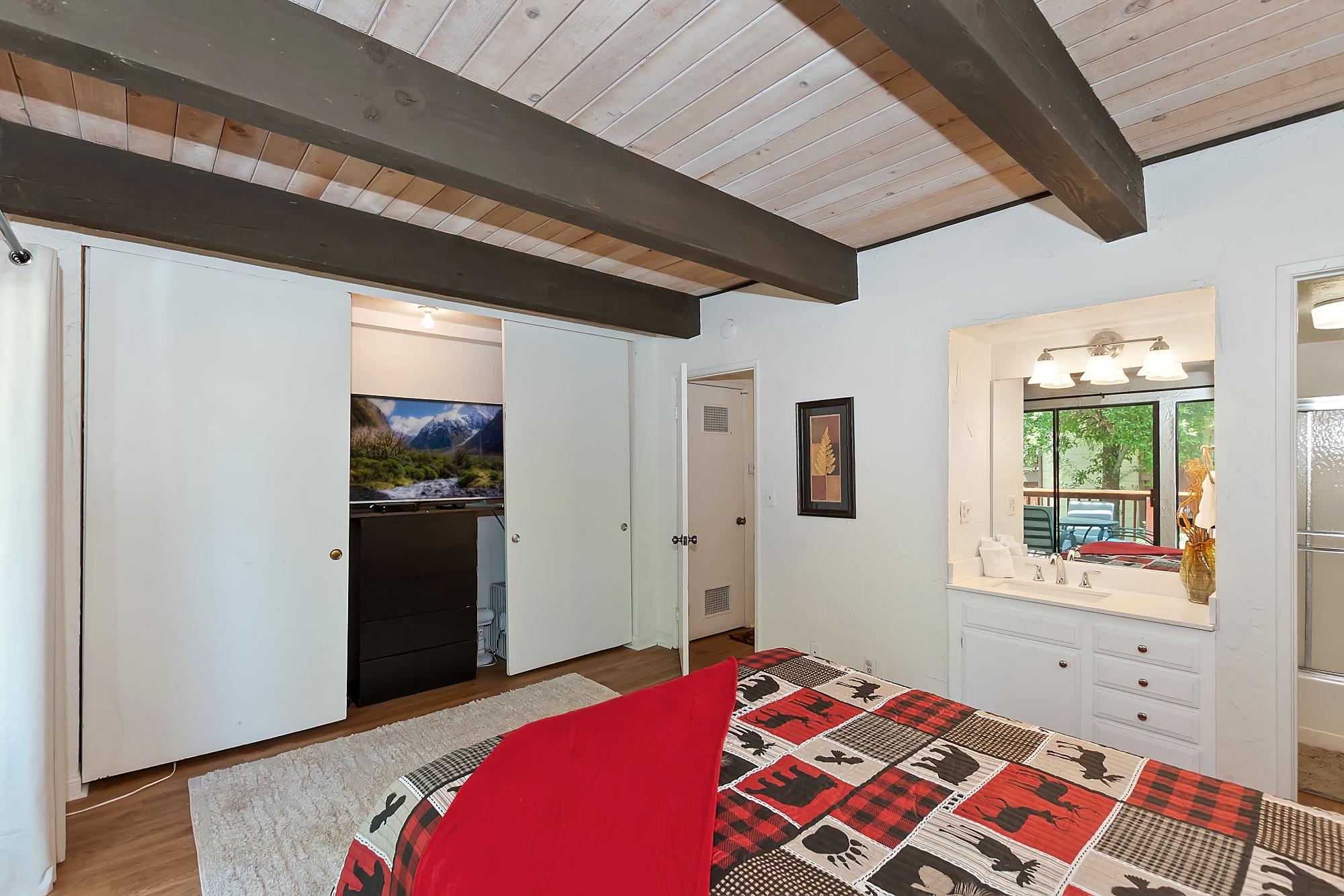 ✓ Master Bedroom: Entry Level, Queen Bed + Smart TV + Vanity Sink