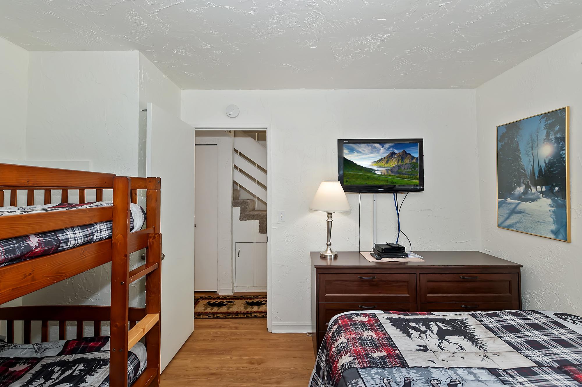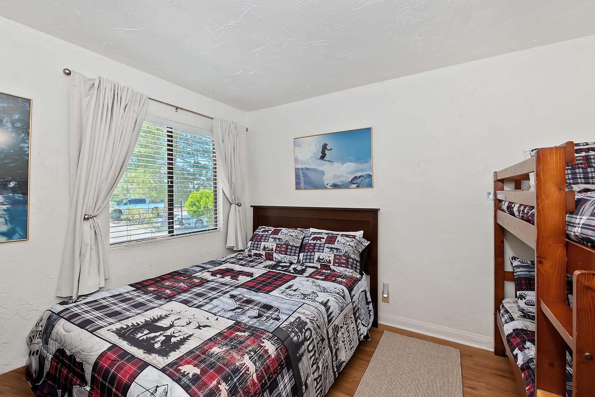 ✓ Bedroom 2: Entry Level, Twin Over Full Bunk Bed + Twin Bed, Closet Space