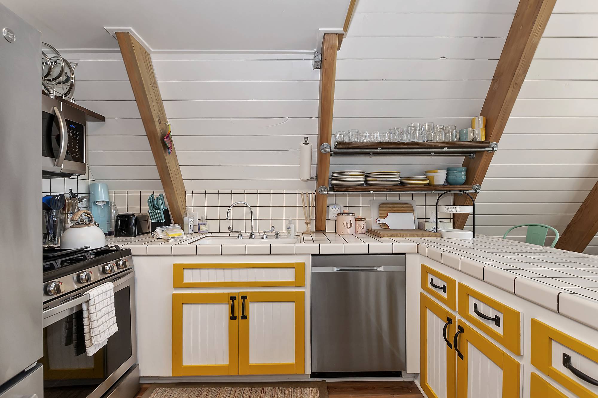 ✓ Dining Area: Enjoy meals at the farmhouse-style dining table with seating for your entire group or keep the cook company at the breakfast bar.