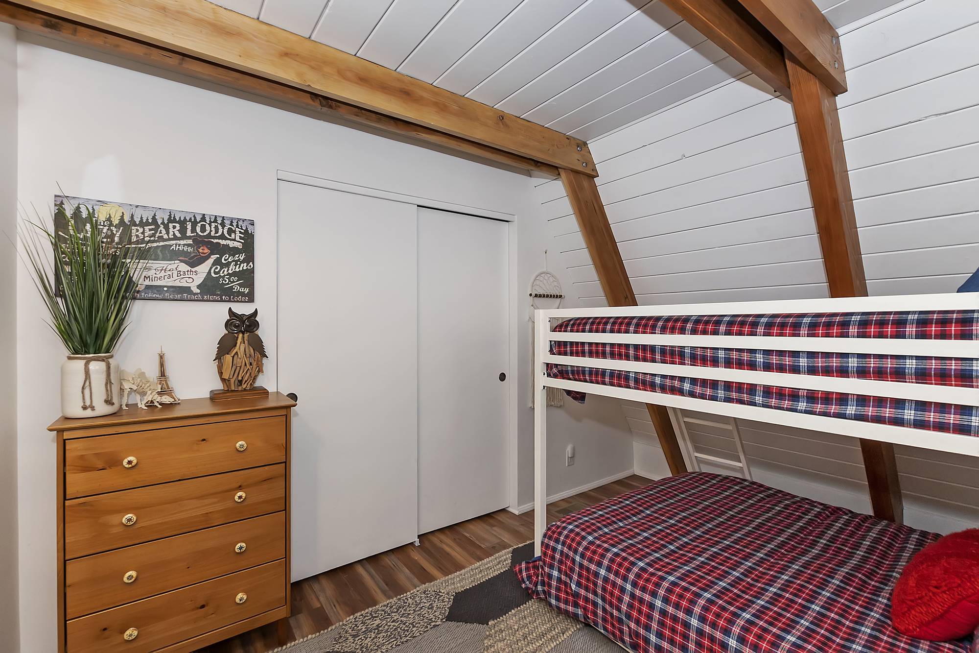✓ First Bedroom: As you enter, you’ll find a three-quarter bath and the first bedroom featuring a twin over full bunk bed and ample closet space.
