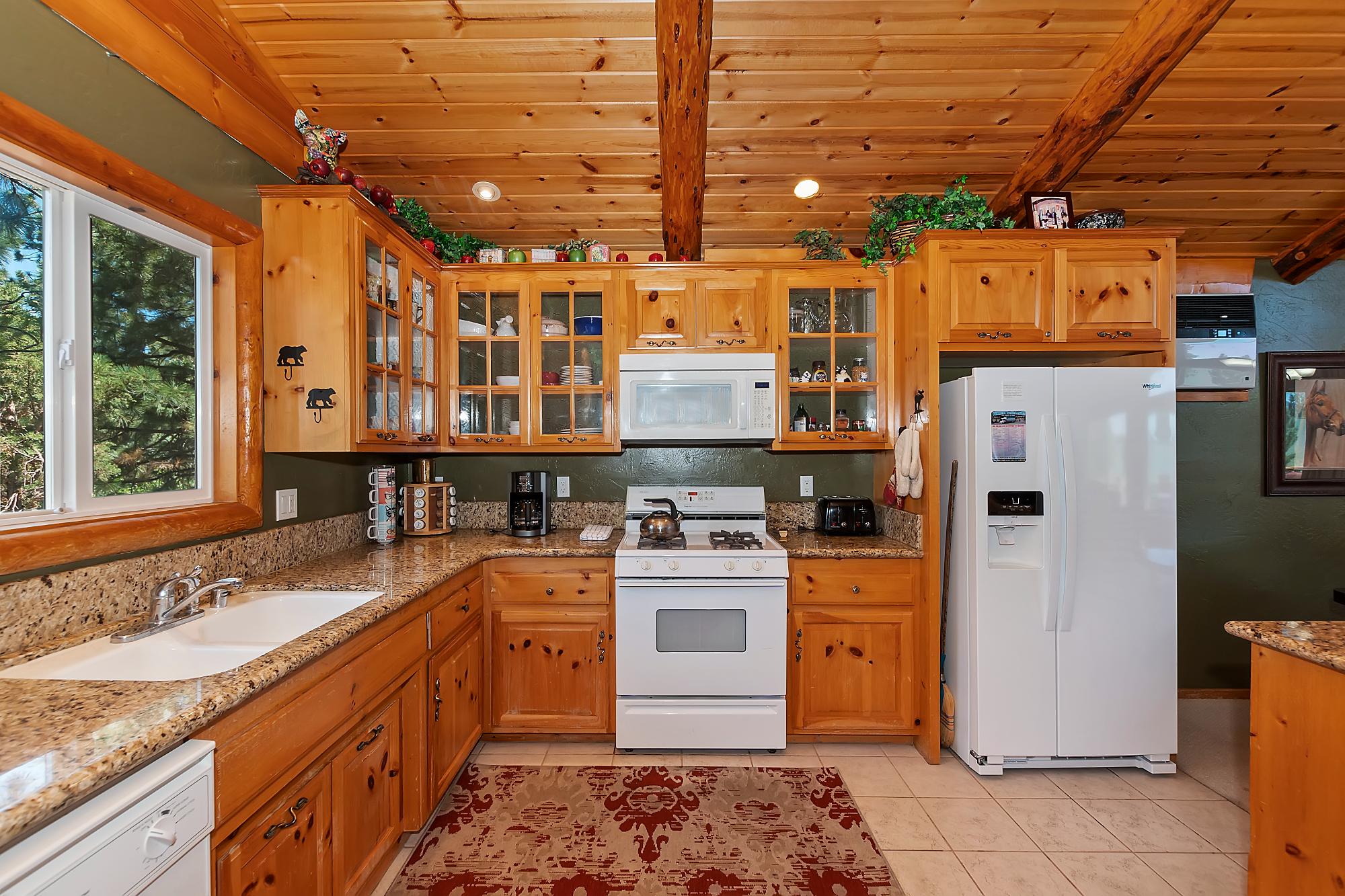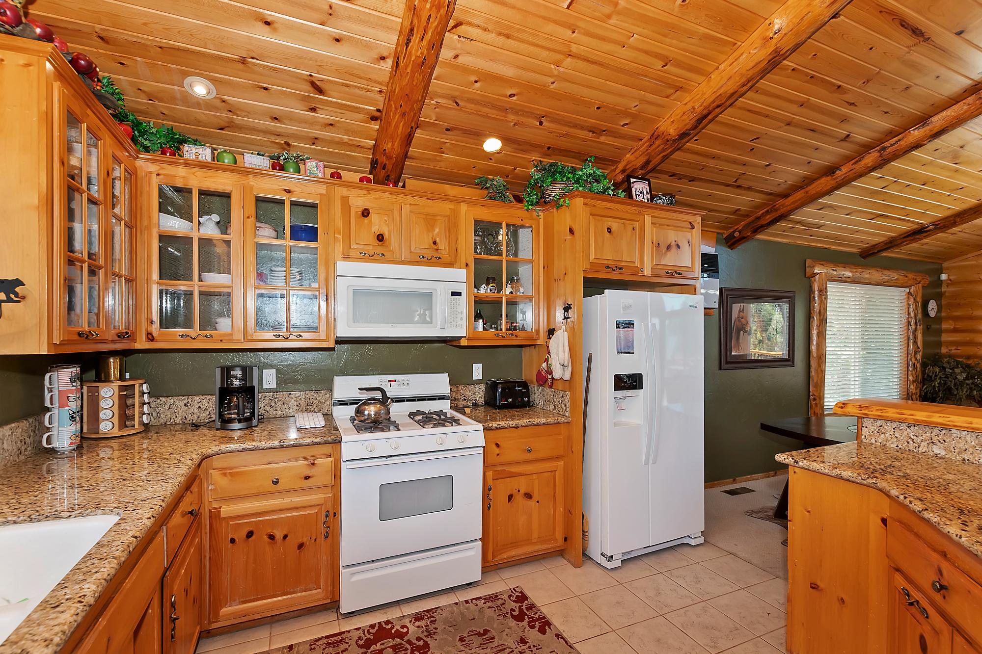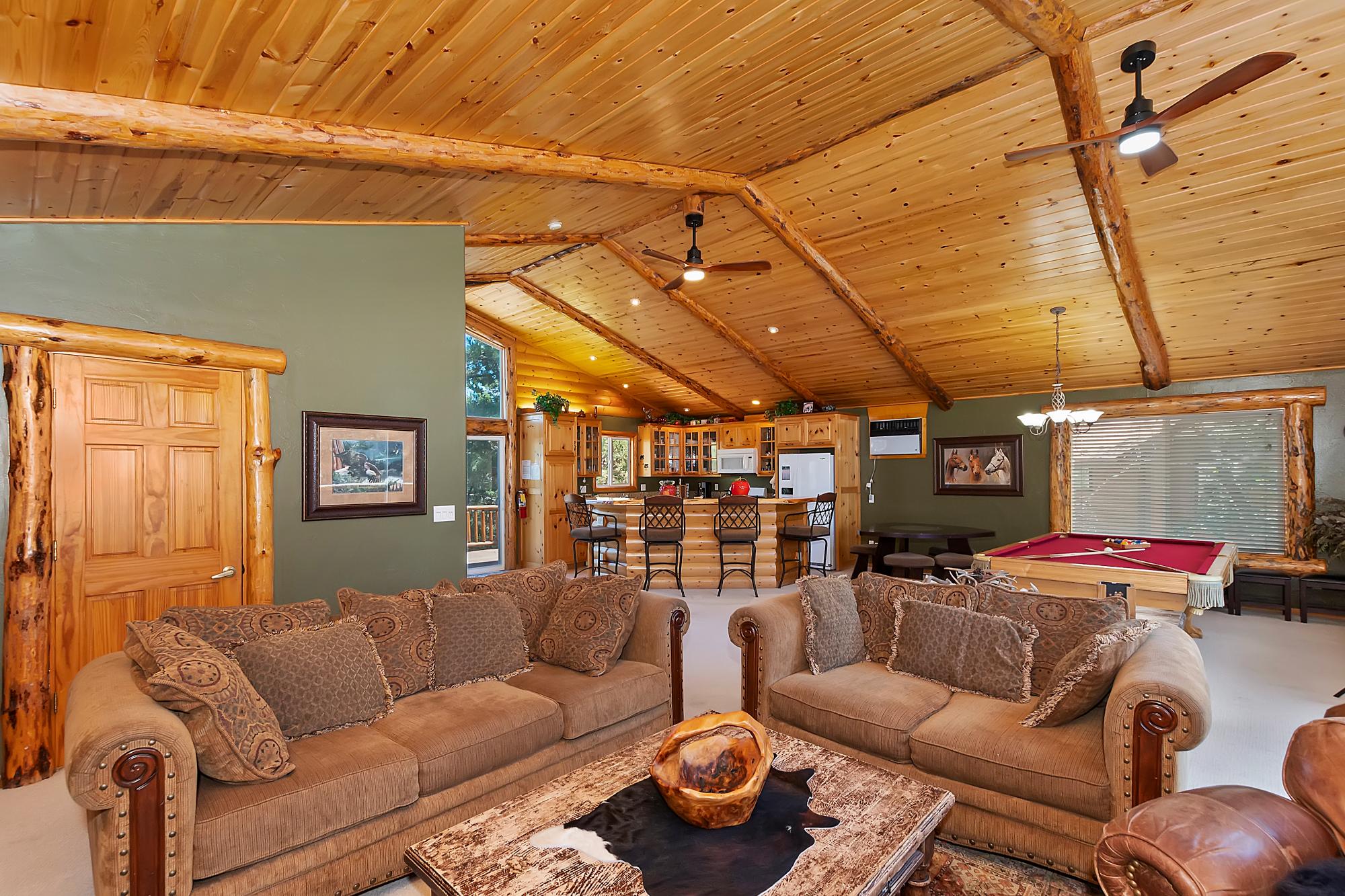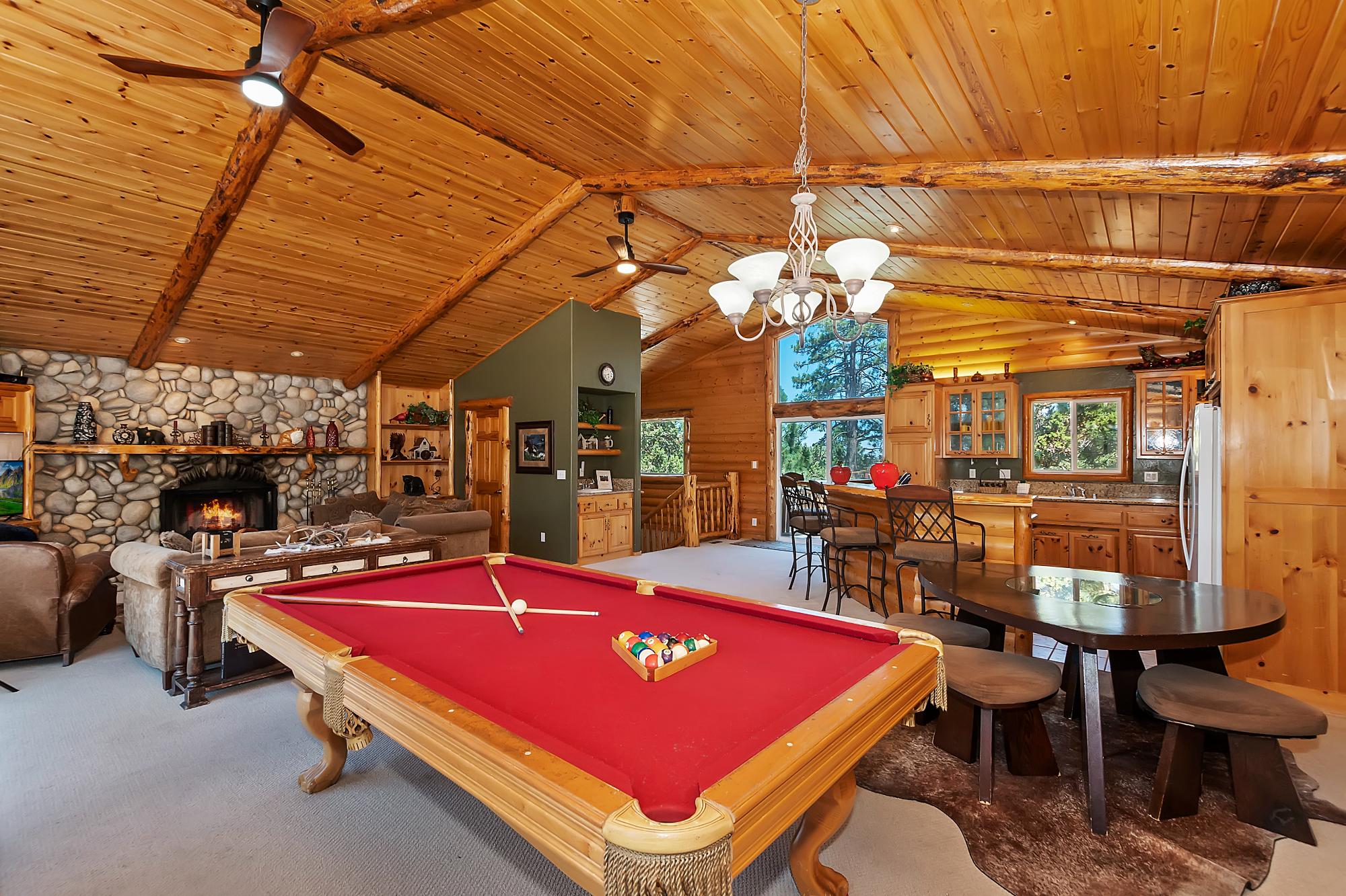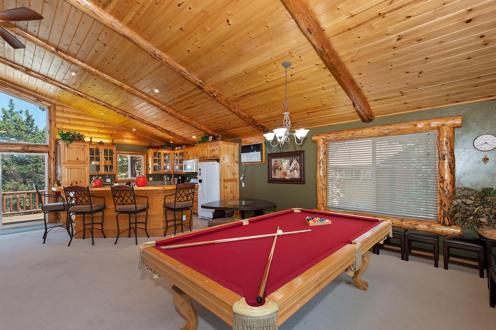 Villa Grove Lodge offers a fully equipped kitchen, ideal for preparing delicious meals for the whole family. Enjoy friendly competition at the pool table or relax in front of the stone fireplace, soaking in the serene atmosphere that the cabin offers.