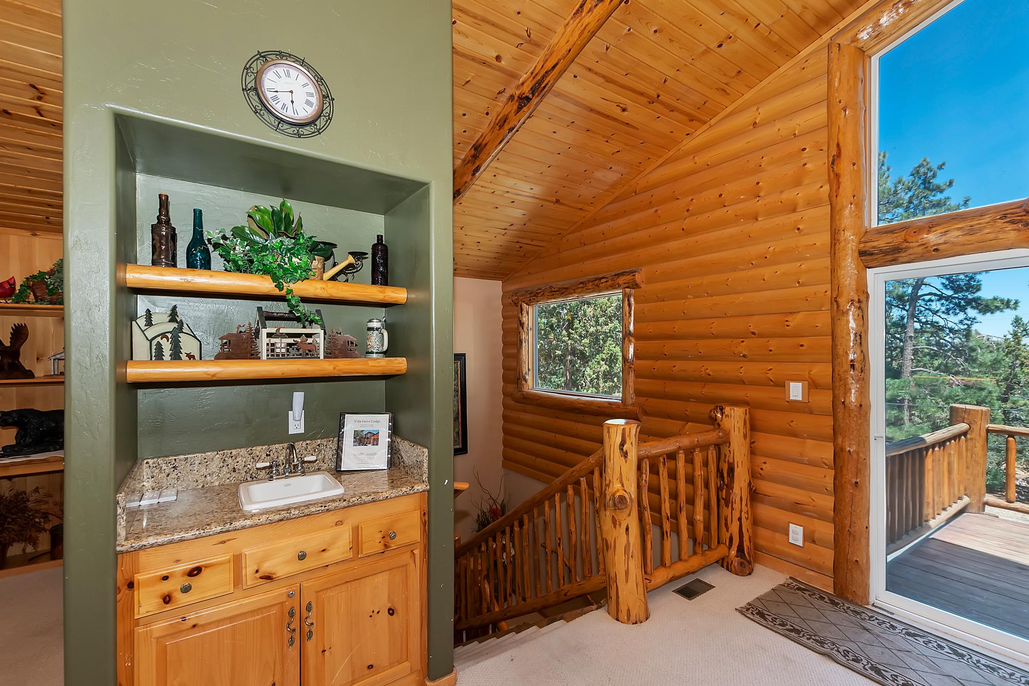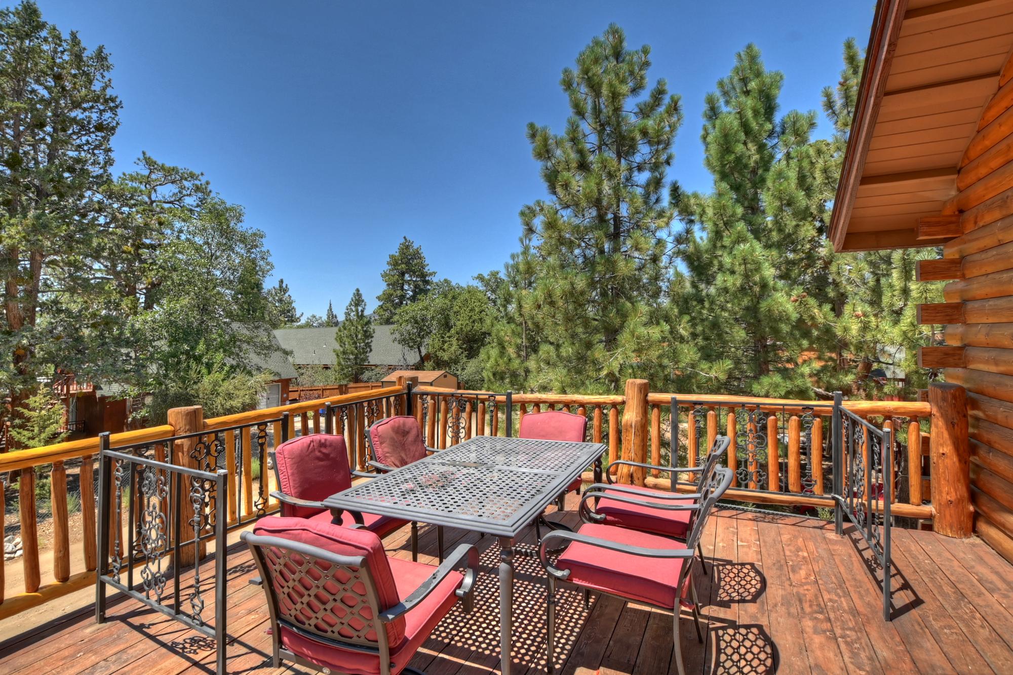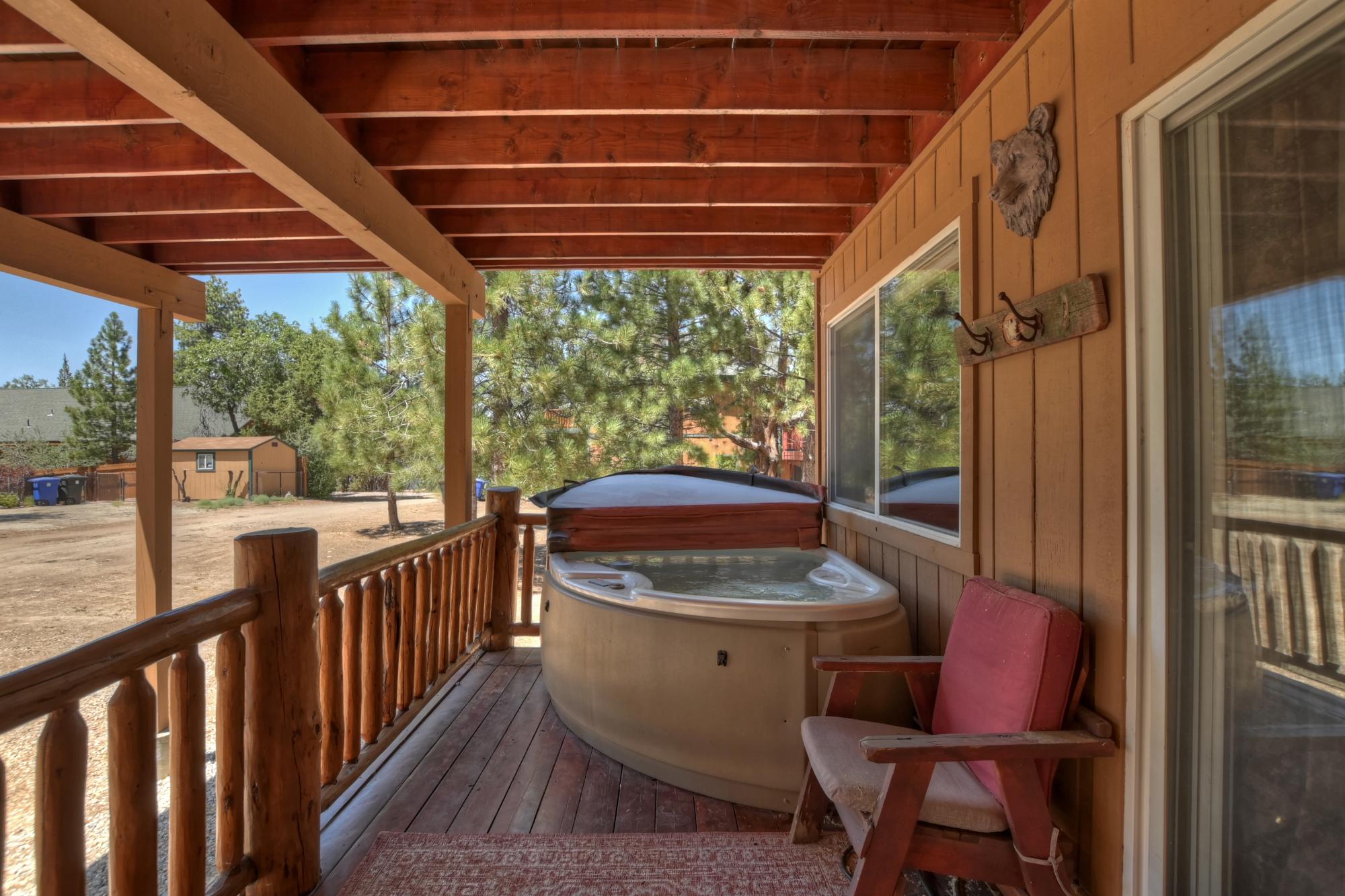Step out onto the back deck to experience the ultimate in relaxation. Bask in the warmth of the three-person hot tub while overlooking the breathtaking San Bernardino National Forest. It’s the perfect way to unwind and reconnect with nature.
