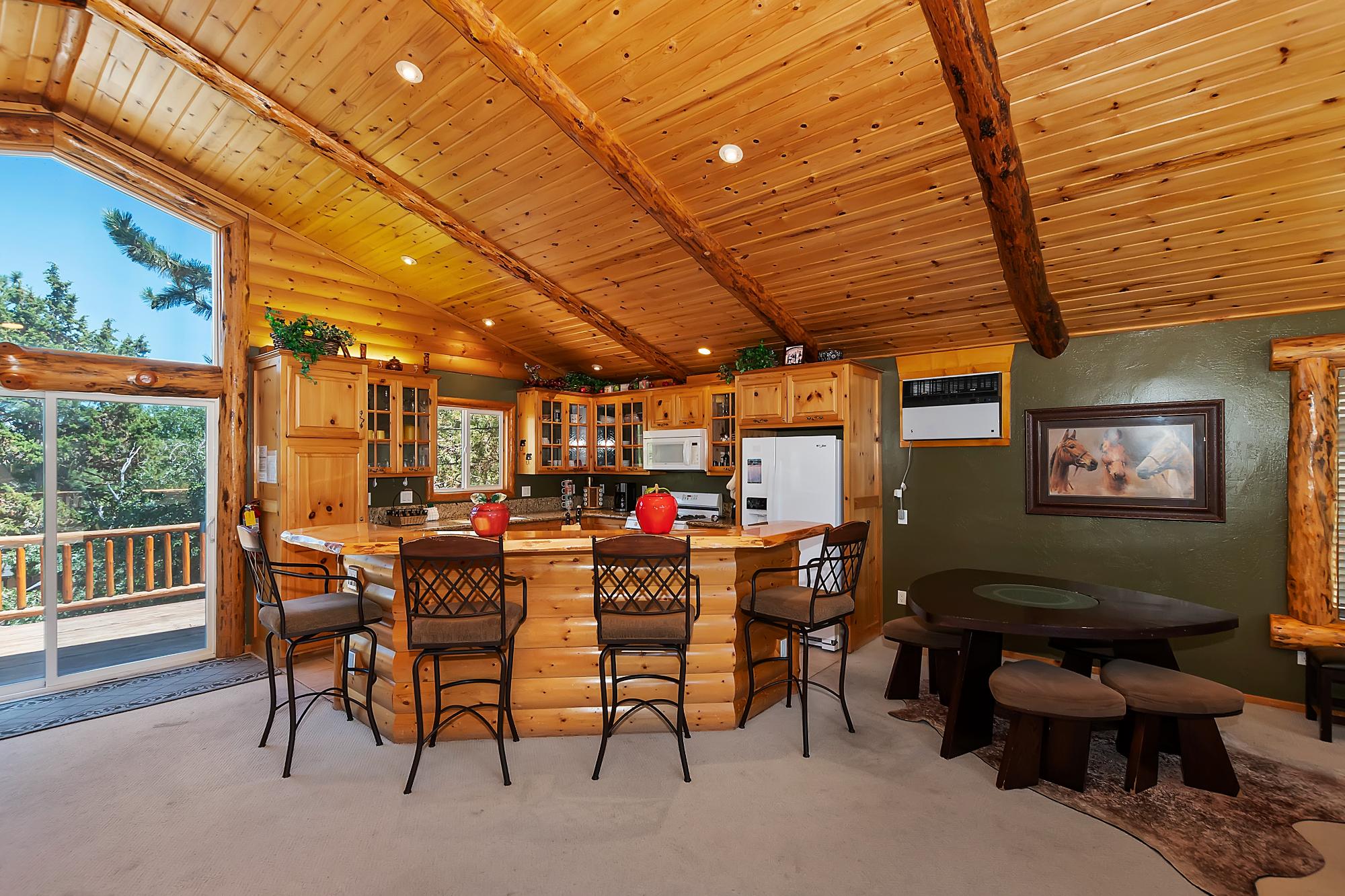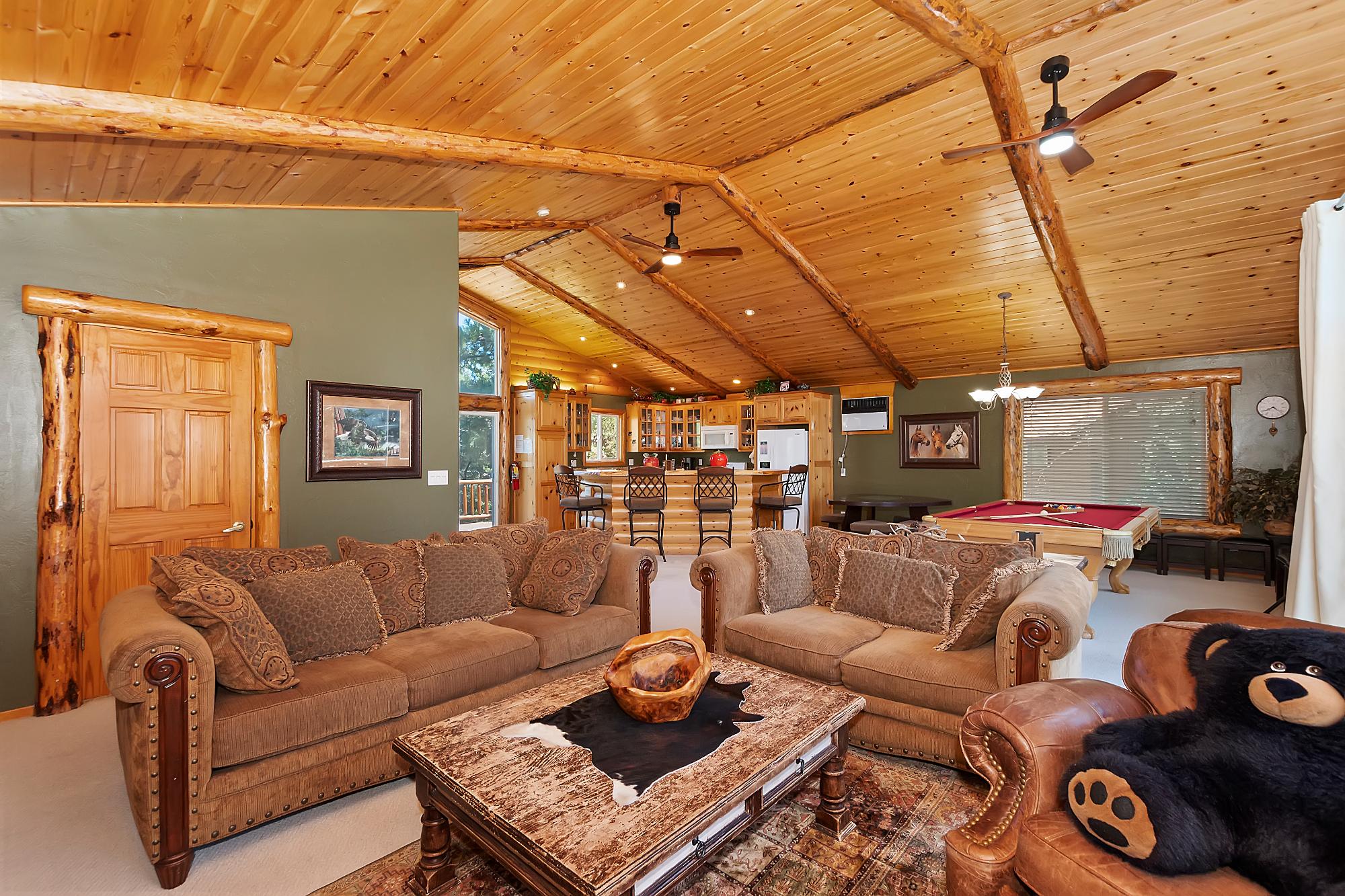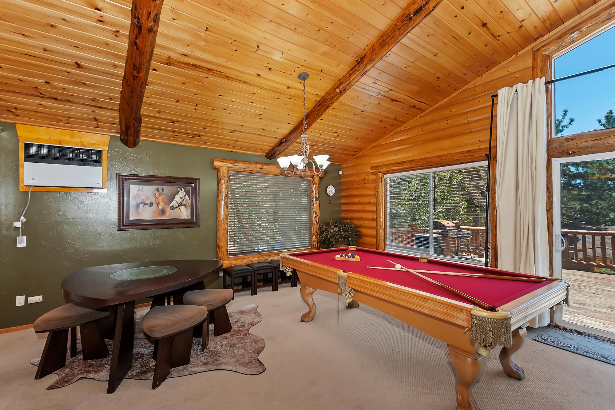 As you drive up to Villa Grove Lodge, you’ll be greeted by the quintessential mountain cabin you’ve always dreamed of. Nestled in the San Bernardino National Forest, this cabin’s timbered exterior and log cabin-style interior create the perfect backdrop for your Big Bear vacation.